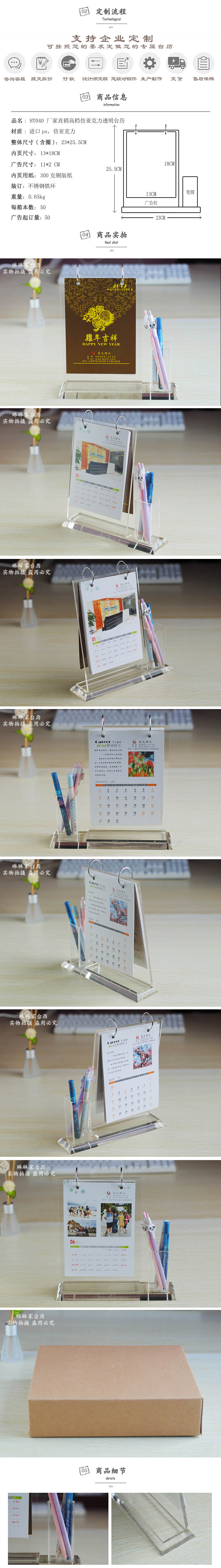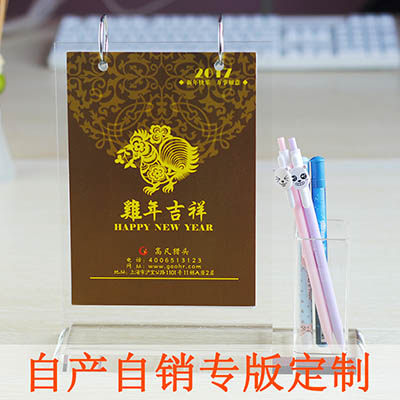 批发商务日历 2021年定制亚克力水晶台历 笔筒竖